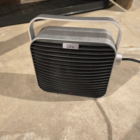 Elektrisk portabel vifteovn. Modellen har bærehåndtak på toppen og gitter i front. På toppen sitter dreiehjul for regulering av temperatur og effekt. Egnet til oppvarming av mindre rom, garasje, bod eller verksted. Drives med strøm via kabel.