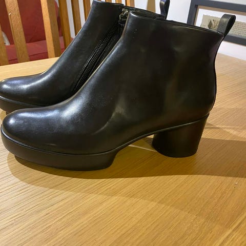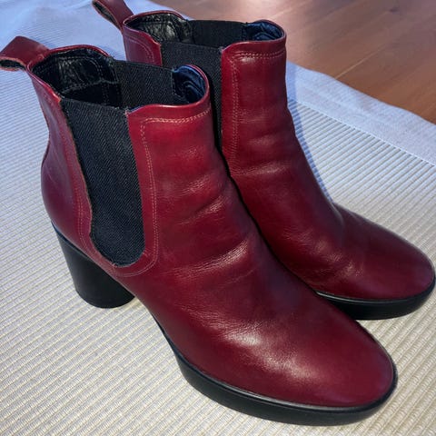 Kjempetøffe ufora ECCO-støvletter/skoletter i skinn.Mørk rød farge.Helt ubrukte. Nypris 1900kr.