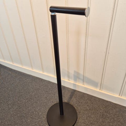 Frittstående toalettrullholder i rustfritt stål, høyde: 75 cm.