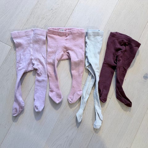 * Strømpebukse delvis ull, 50/56. 2 smekker og tøfler, votter 0-1 år merinoull