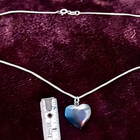 Kjede (anker, tynt) i sølv 925 (se bilde av stempel) med anheng i hematitt/blodstein.