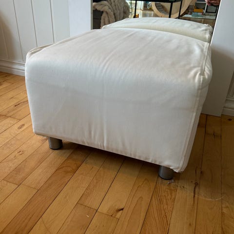 Godt brukt puff selges. Noe bruksmerker samt en varmeskade på ene siden som kom fra en varmeovn en gang. Ellers helt grei stand.