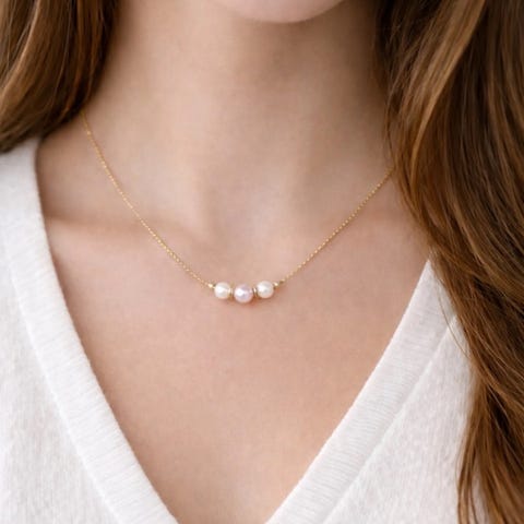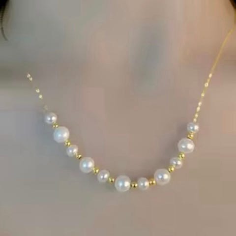 Vakker og delikat perlehalskjede - 750 (stemplet), som måler 45 cm i lengde.