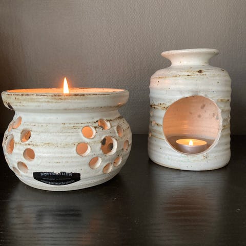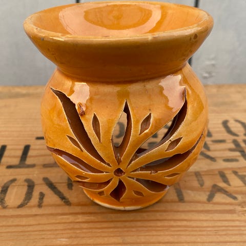 Unike oljebrennere fra Marokko med dekorative utskjæringer som gir nydelig, varmt lys og vakre mønstre når de tennes. Perfekt som dekorasjon i hjemmet, eller til bruk med kongerøkelse, eteriske oljer, duftoljer eller duftvoks. Finnes i flere farger: hvit, blå, mint og oransje. Hver brenner er unik og tilfører en eksotisk, koselig atmosfære til rommet.