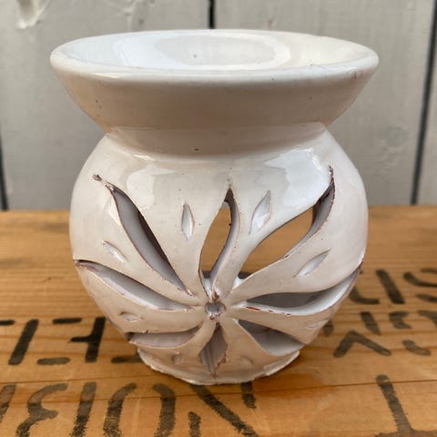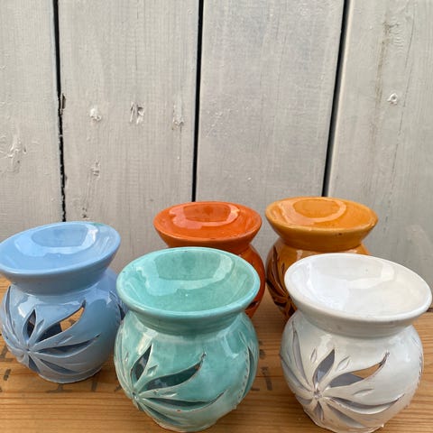 Unike oljebrennere fra Marokko med dekorative utskjæringer som gir nydelig, varmt lys og vakre mønstre når de tennes. Perfekt som dekorasjon i hjemmet, eller til bruk med kongerøkelse, eteriske oljer, duftoljer eller duftvoks. Finnes i flere farger: hvit, blå, mint og oransje. Hver brenner er unik og tilfører en eksotisk, koselig atmosfære til rommet.