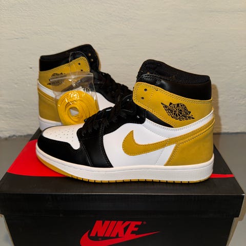 Selger disse Air Jordan 1 skoene i størrelse 46 som er kjøpt fra kicksday.