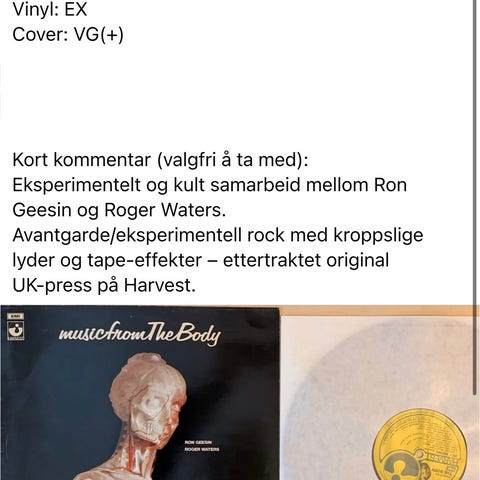 Selger et eks av denne godbiten. Dessverre er omslaget slitent og har cut out i hjørnet, se bilder. Vinylen spiller bra.
