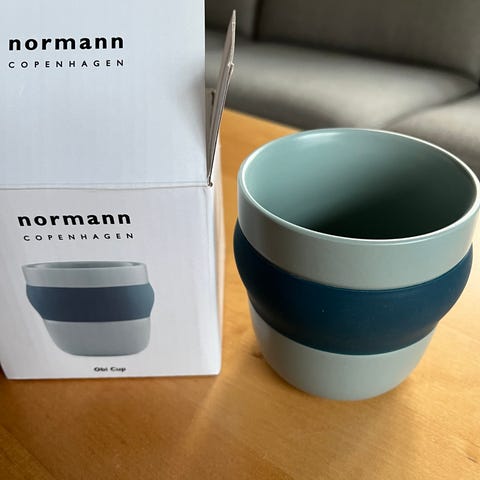 Selger et helt nytt og ubrukt sett med 6 "Outdoor" drikkebeger fra Modern House. Koppene kommer i en flott blåfarge og er perfekte for tur, camping eller hageselskap.