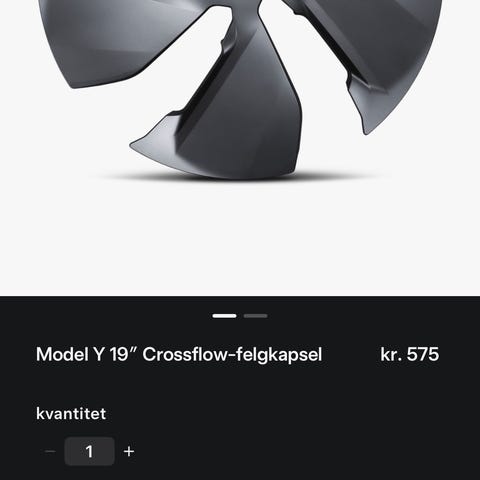 Litt brukte Tesla Model Y Crossflow felgkapsel 19" i svart. Felgkapselen er beregnet for 19-tommers felger på Tesla Model Y 2025 Juniper og dekker hele felgens front.