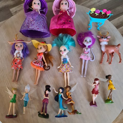Selger en pakke med diverse lol dukker, hatchimals, enchantimals, tingeling figurer og muffins dukker med div tilbehør.