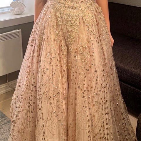 Nydelig rosa ballkjole kjøpt hos Lychinor i Oslo. Kjolen er merket med str xxs, men er fleksibel oppover i størrelse pga snøring i ryggen. Bruker vanligvis s-xs her. Kjolen kan prøves, og sendes ikke. Brukt uten justering av lengde, 169cm med 4-5 cm hæl. Man kan bruke underskjørt, som vil løfte kjolen et par cm. Man kan også klippe et par cm av ytterste tyllet/legge opp kjolen ved behov.