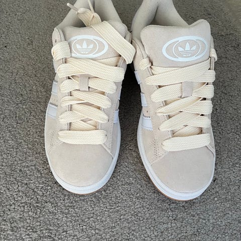 Adidas sneakers joggesko i størrelse 39.5 Skoene er i en beige farge med snøring foran og Adidas-logo på pløsen. Overdelen er i semsket materiale, og innsiden har myk, fôret innerside for ekstra komfort. Yttersålen er i gummi. Egner seg til hverdagsbruk og fritid. Skoene er varme.