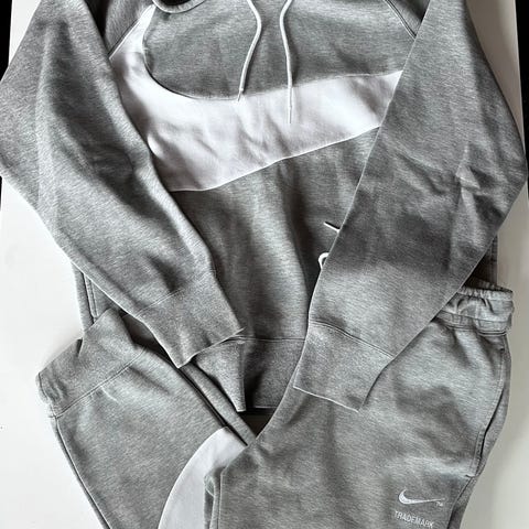 ⭐️Flott joggedress fra Nike pent brukt samlet 398,- 199,- pr del. Ny pris 2200,- Bukse størrelse S og hettegenser størrelse M. Passer fint sammen. Kan sende mot porto på 69,- med post nord. Har Vipps, pakker godt og sender samme dag. Likt som Erling Haaland. Ingen flekker eller hull.