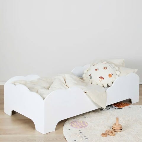 Sengen kan fint brukes uten hodegavl. Hodegavl har sprukket og kan ikke garantere at den ikke sprekke opp mer, dette er en feil med hodegavlen bare og den selges som i beskrivelsen her. Det kan eventuelt sette på en annen gavl (etter ønske) eller bare bruke bunnen. medfølger sider (sengehest) som på original bilde. Sengen er ikke brukt, kun montert. Hodegavl kan bli med, men som sagt feil med den.