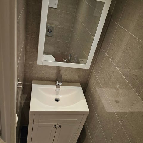 Baderomsskap med vask og blandebatteri