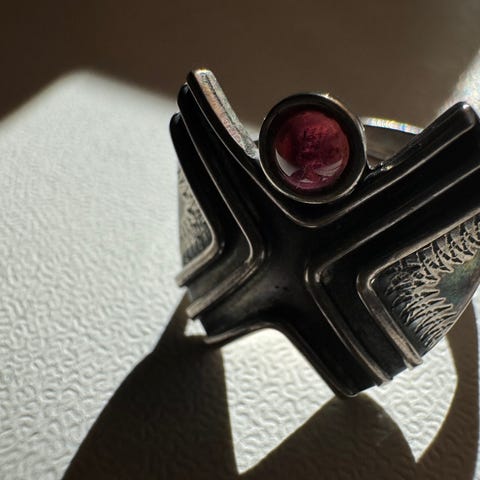 830 sølv som er varmere i tonen enn 925, se forskjellen på bildene da jeg har tatt bilde ved siden av en 925ring.