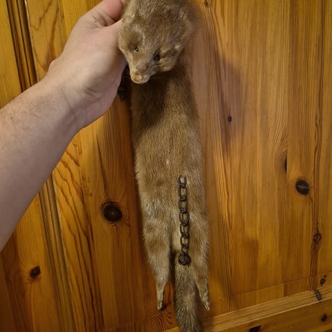 Pels skinn unisex i sølv/grå/sorte nyanser. Skinnet har lang, tett pels med mørkere partier langs rygg og ben. Skinnet er mykt og godt preservert. Hele skinnet med hode, ben og hale er bevart. Framlabbene mangler klør, mens bakbeina fortsatt har klør. Kan brukes som dekorasjon, til håndverk, sømprosjekter eller som pelsdetalj på klær og interiør. Unisex produkt egnet for ulike bruksområder der ekte pels ønskes. Kan sendes.