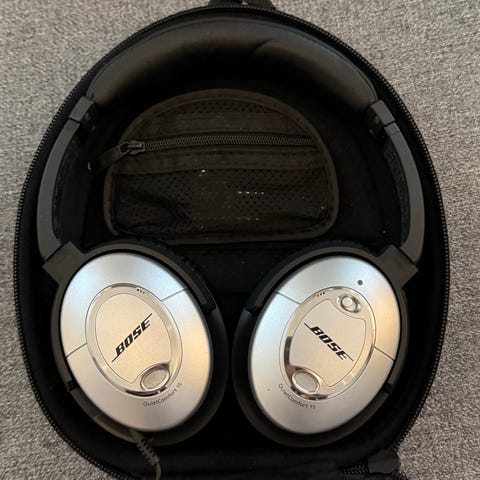 Bose QuietComfort 2 hodetelefoner med aktiv støydemping. Kablet modell med 3,5 mm minijack-tilkobling. Over-ear design med polstret hodebøyle og øreputer. Leveres med hardt etui og avtakbar kabel med innebygde støynivå-brytere. Egnet til bruk med enheter som har hodetelefonutgang via kabel, for eksempel bærbare musikkspillere, PC eller annet lydutstyr.