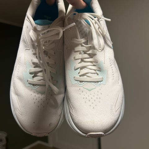 Hoka joggesko i hvit farge i størrelse 38. Modellen har snøring, polstret hælkappe og perforert overdel for bedre ventilasjon. Yttersåle i gummi gir godt grep på underlaget. Skoene passer til hverdagsbruk og ulike typer lett trening eller gåturer.