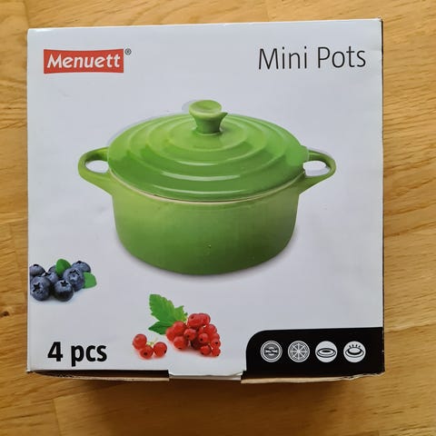 8 Mini casserollee til person servering. (Kuvert) Grå, ubrukt, liggi I skap en stund