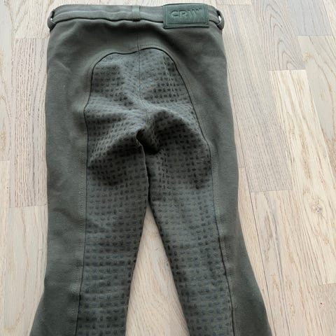 CRW ridebukse for barn i størrelse 150. Buksa er i mørk blå farge og har helforsterket sete med silikon for bedre grep i salen. Modellen har smal passform og lange ben, samt lommer i siden. Egnet til ridning og stallbruk.