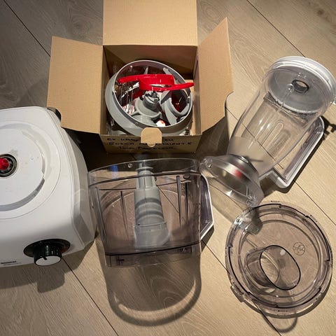 Selger en pent brukt og pålitelig Kenwood Prospero kjøkkenmaskin. Den er kompakt og effektiv, perfekt for både baking og matlaging.