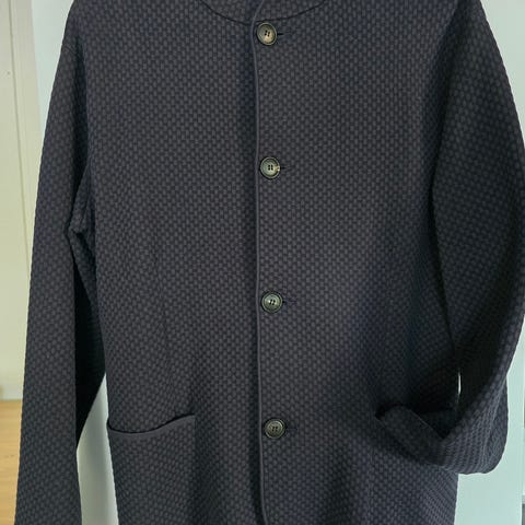 Selger Emporio Armani blazer i svart fløyel (85% rayon / 15%) silke, Made in Italy. Flott som kveldsantrekk og festjakke, og kan også styles ned med jeans. Kjøpt ny ca 2007, pent brukt og i god stand. Ikke-røyk.