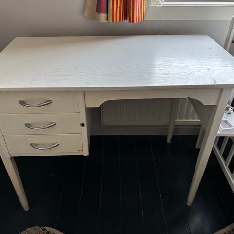 Skrivebordet er pent brukt, noen små slitasjemerker, men ingenting sjenerende.