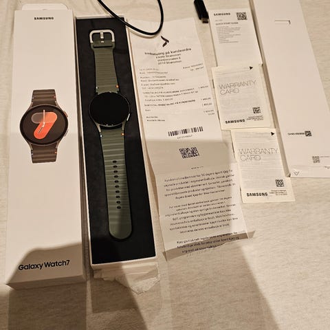 Lite brukt smartklokke fra Samsung selges da den blir lite brukt. Kjøpt ny i 2025.