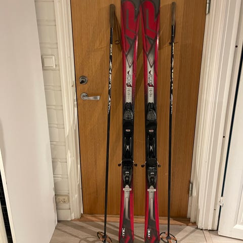 Selger lite brukt alpinpakke. Den inneholder Dynastar Alpinski, lengde 162 cm med Look bindinger- Leki Vista alpinstaver, lengde 120 cm- Nordica alpinstøvler str 30.5