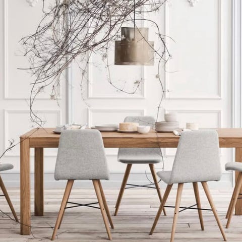 Bordet er laget av hvitpigmentert oljet eik, finer og har to tilleggsplater, slik at det kan utvides til lengde tot 2,6meter