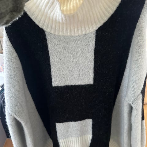 T-skjorte med uvanlig snitt. En blanding av hvit, lysegrønn og mørkegrønn farge. Størrelse XL–2XL.