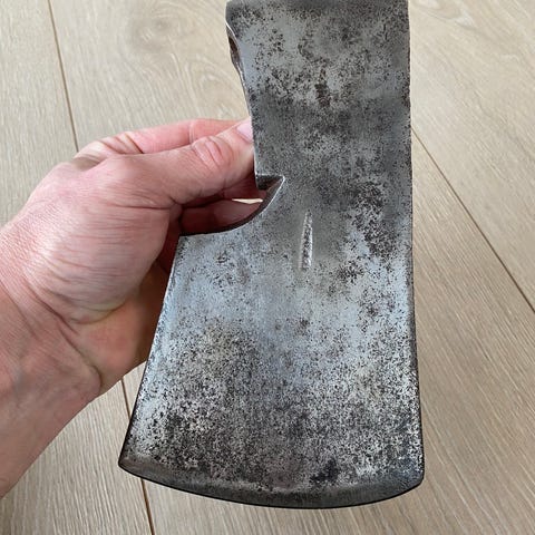Solid og praktisk huggjern kniv fra Kongsberg, produsert i Norge. Rustfritt blad, godt gummiert grep og original slire med beltefeste. Lite brukt og fremstår i pen stand.