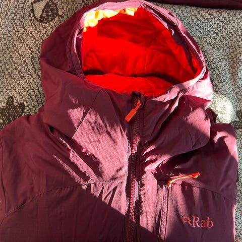 Rab firewall turjakke/skijakke for dame i størrelse S. Jakken er turkis (litt mer grønt i seg enn siste bilde) og har hette med justeringsmuligheter. Perfekt for toppturer, ski og fottur.