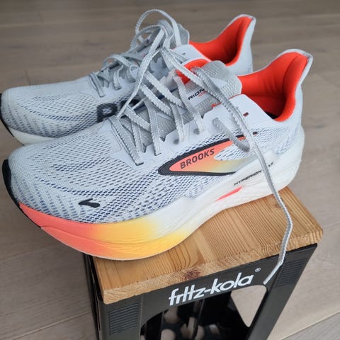 Pent brukte Brooks Hyperion Max løpesko. Løpt ca 100-150 km i de. Passer ikke perfekt til min fot og selges derfor videre rimelig da det er gode sko som har mange km igjen å løpe.