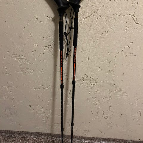 Komperdell Shadow gåstaver i Carbon lengde 135 cm. usikker på om de er brukt ... ser helt nye ut.