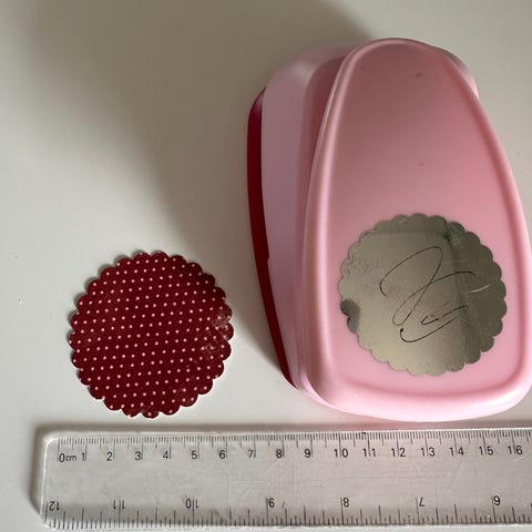 stor stansemaskin 15 cm lang, 10 cm bred og 7,5 cm høy.