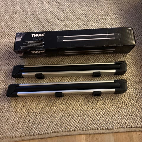 Thule skiholder for montering på takstativ. Holderen er beregnet for transport av ski eller snowboard på biltaket. Den har svart farge med sølvfargede detaljer og åpnes fra siden for enkel inn- og utlasting. Passer på de fleste standard takbøyler med kompatibelt festesystem. Egner seg for trygg og stabil frakt av skiutstyr på lengre og kortere turer. Brukt kun 1 sessong.