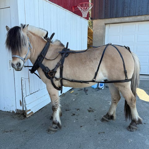 Selger en grei arbeidssele som blir litt for liten til min veldig store dølahest, men passer nok mindre dølahest og kaldblodshester.