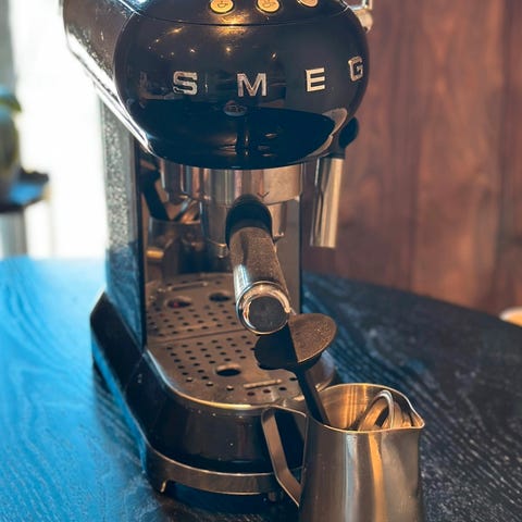 Vurderer å selge min pent brukte Smeg espressomaskin i hvit/kremet farge!