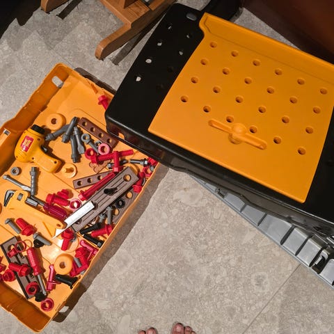 Smoby Black and Decker verktøybenk 103 cm med verktøy og tilbehør (hva fremgår av de første bildene). Siste bilde hentet fra nett.