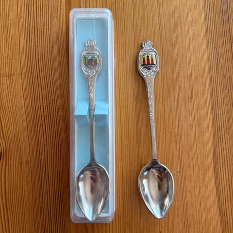 Souvenir dessert skjeer med bymotiv metall sølvfarge