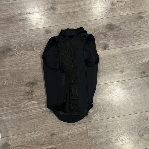 Helmer Safe ryggskinne for barn i svart farge. Modellen er merket med nivå 2 og er sertifisert etter EN 1621-2:2014. Produktet er utformet som en vest med integrert ryggbeskyttelse og elastiske partier for bedre passform. Beregnet for barnestørrelser, med polstret ryggparti og justerbar lukking. Egnet som beskyttelse ved aktiviteter der ekstra ryggbeskyttelse er ønskelig, for eksempel sykling eller annen fysisk aktivitet der ryggbeskyttelse er påkrevd eller anbefalt.
