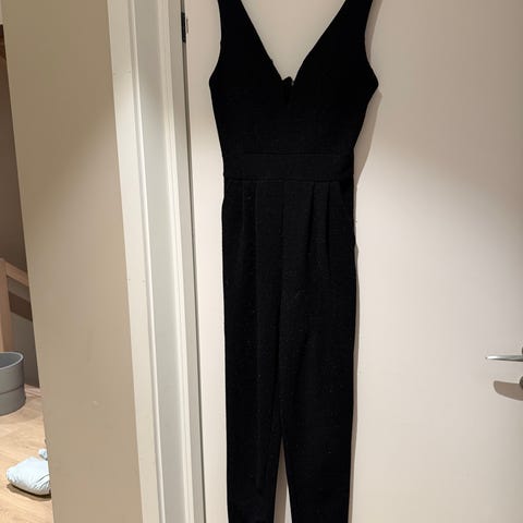 Floyd buksedress for dame i størrelse XS. Buksedressen er svart og er laget i polyester. Modellen er ermeløs med dyp v-utringning foran og lange, smale ben. Passer til bruk der en hel buksedress er ønskelig i stedet for kjole, for eksempel til sammenkomster eller andre anledninger der man ønsker et helhetlig antrekk.