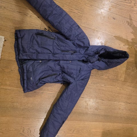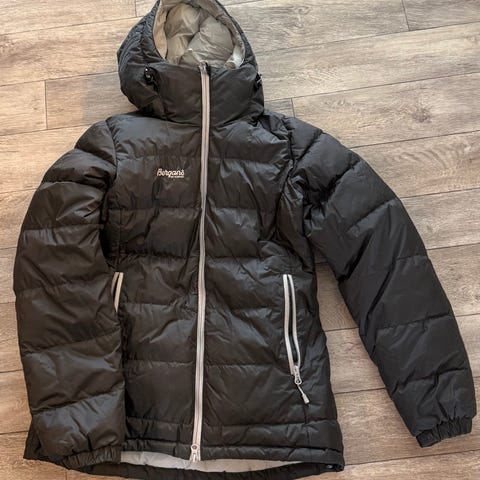 Bergans dunjakke for dame i størrelse S. Jakken er lilla med hette og glidelås i kontrastfarge. Den har sidelommer med glidelås og er fylt med dun for isolasjon. Passer som ytterjakke til hverdagsbruk og ulike utendørsaktiviteter i kjøligere vær.