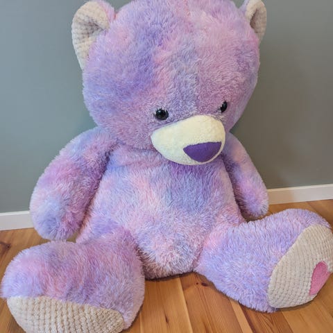 Selger vår gigantiske bamse på 160cm da vi ikke har plass til den lenger. Den er myk og god, men tar stor plass. Må hentes