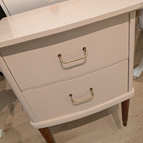 Helt nyoppusset solid nattbord i nydelig lysgrå farge med gulldetaljer selges pga flytting