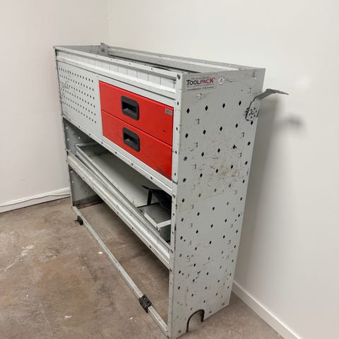 Modul-System skuffeseksjon verktøyskap i stål i grå og svart utførelse. Enheten har flere skuffer med håndtak i front samt åpne rom for oppbevaring. Egnet for montering i bil, garasje eller verksted for organisering av verktøy og utstyr. Kraftig topplate gir ekstra avlastnings- eller arbeidsflate. Bygd i metallkonstruksjon for robust bruk i arbeidsbil eller fast installasjon i arbeidsrom.
