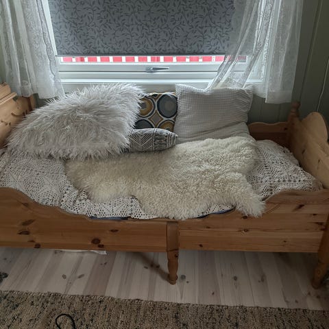 IKEA stabelbar seng i heltre furu. Rammekonstruksjon i lyst treverk med ribbebunn i tre. Passer som enkeltseng eller dobbeltseng (de kneppes sammen så de ikke sklir fra hverandre). Madrass følger ikke med. Så og si ubrukt og selges pga av at den ikke brukes.