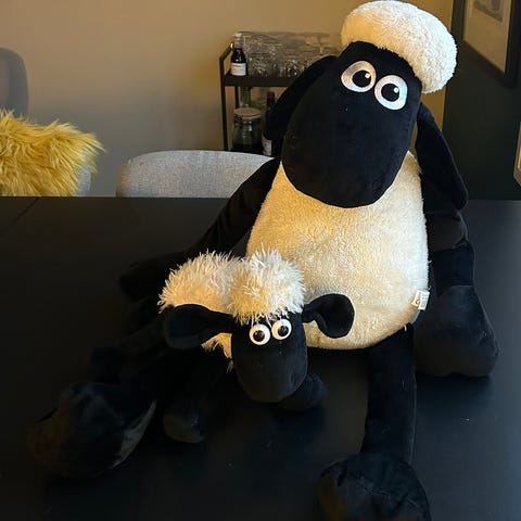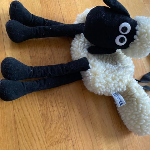 Sausen Shaun bamse selges, den har batteri og lager lyd